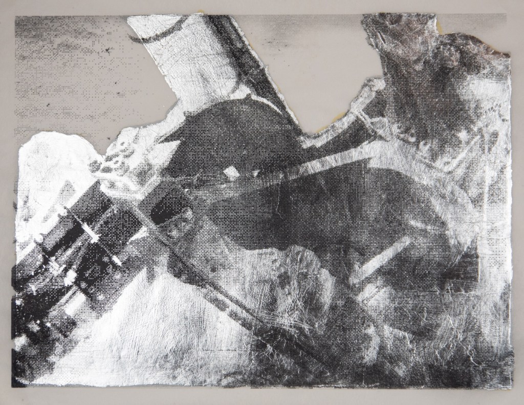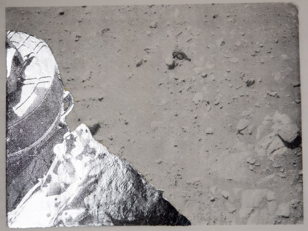 “Deborah Santoro’s work Perseverance Amidst the Regolith embodies the characteristics of thoughtful risk-taking and innovation… blending photography and printmaking in a new look at outer space. It pushes boundaries of artmaking with the incorporation of AI- and robot-generated images, which often capture the robot’s own “body.” Human interaction with technology is implicitly presented with the Roverbot’s authorship while viewers are asked to reflect on the self while considering the future. And the use of aluminum leaf speaks to the (sometimes humorous) association of metallic finishes with futuristic tropes.”