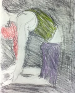 Full disclosure- I didn’t draw anything on Saturday. We just got our power back on Friday and Saturday I went food shopping, moved my stuff out of my cousin’s house (a blessing on your head cousin!) and took my kids trick or treating. And cleaned my kitchen, washing week old dishes from the dishwasher (eeuuww). Luckily, I found an extra drawing that I had made while at the library the other day.