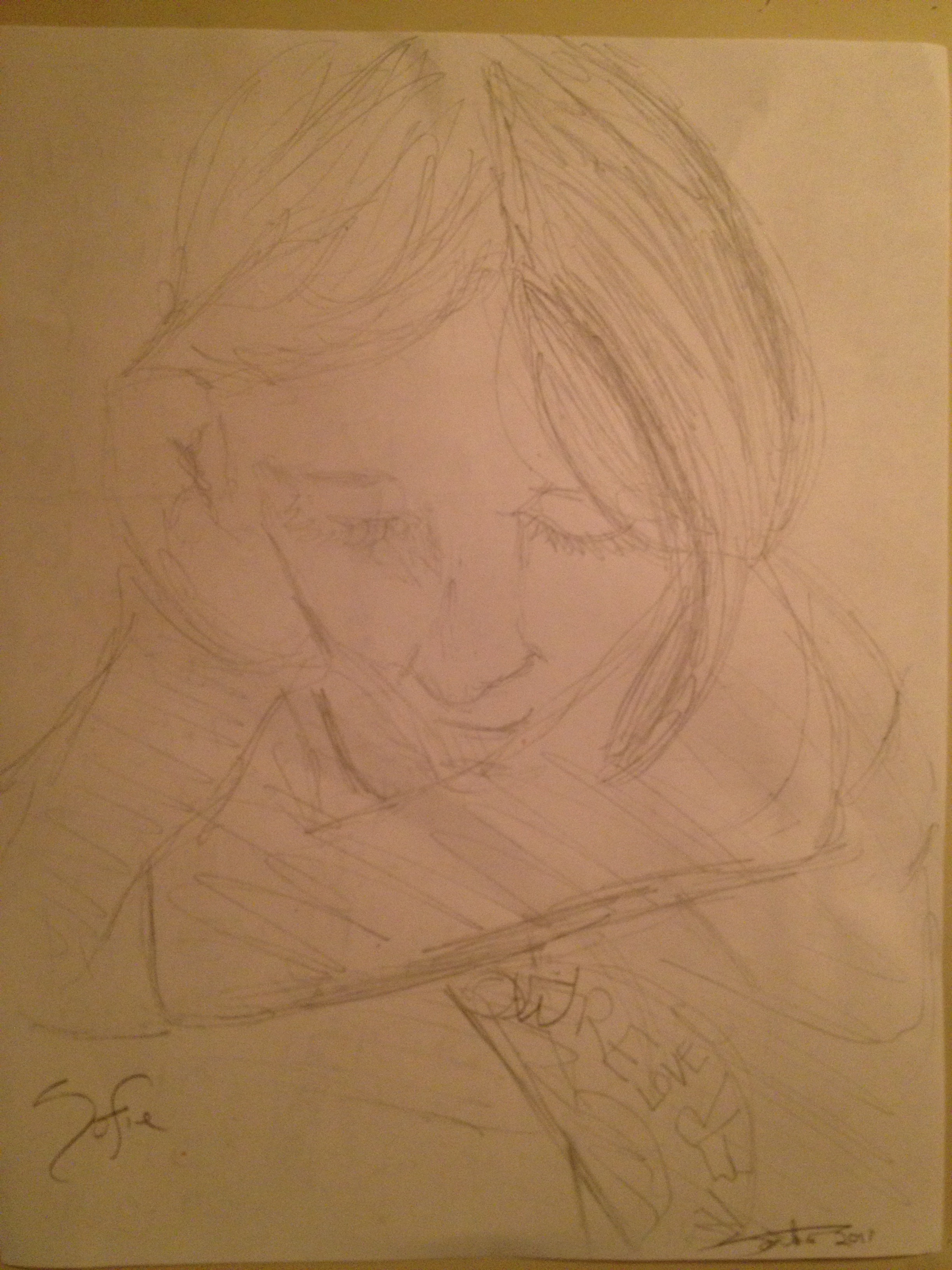 I was done, really, with more than enough to do tonight and this week, but my middle daughter was said and I love her new haircut, so here’s another sketch from today.