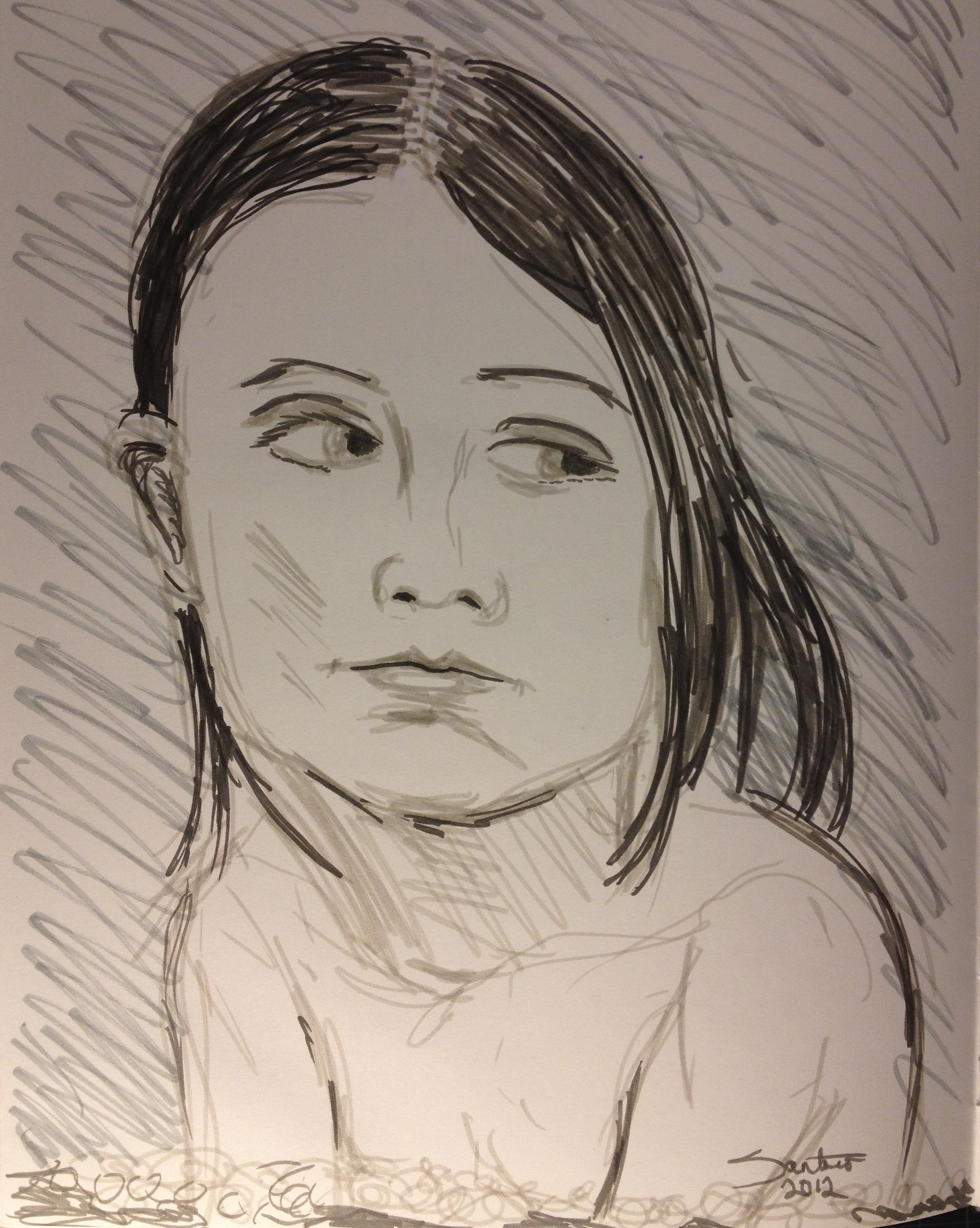 Hmm, wet curly hair is tricky- especially when the boy won’t sit still for more than a second! The good thing? It forces me to draw from memory a little. Which I don’t like, but it’s an excellent skill nevertheless.
