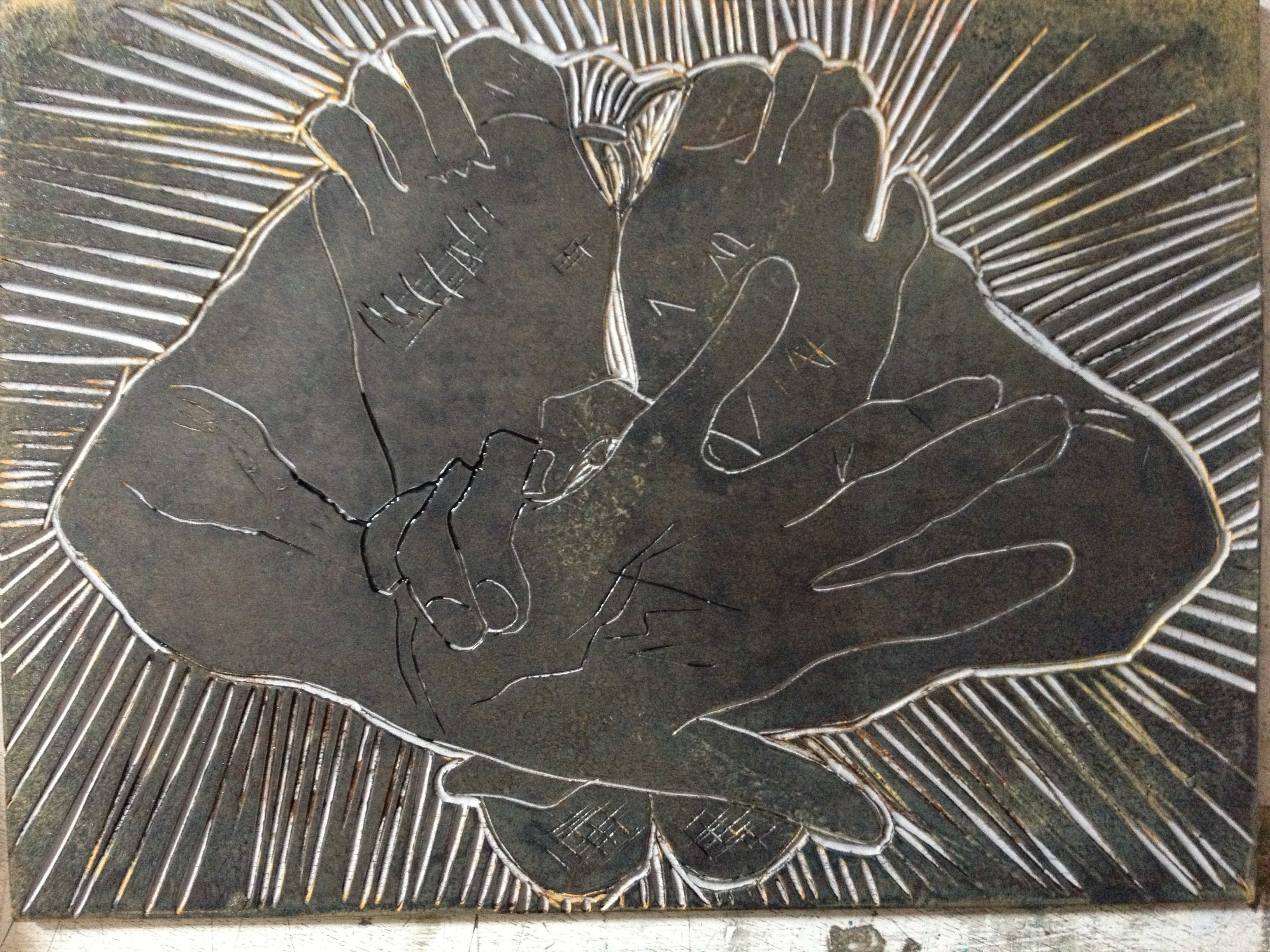 Today I carved this plate from unbacked linoleum.  I still have a lot to learn about carving plates because although I thought it came out alright, it didn’t print the way I wanted.  I want the lines to be dark, not light. Duh.  So the first bunch of prints I pulled were disappointing and I switched gears.