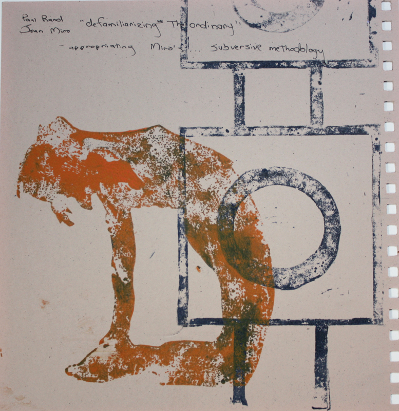 And here is the Islamic pattern, although I goofed it up with too many circles. Gouache paint, colored pencil, stray ink from a plate my oldest daughter carved.