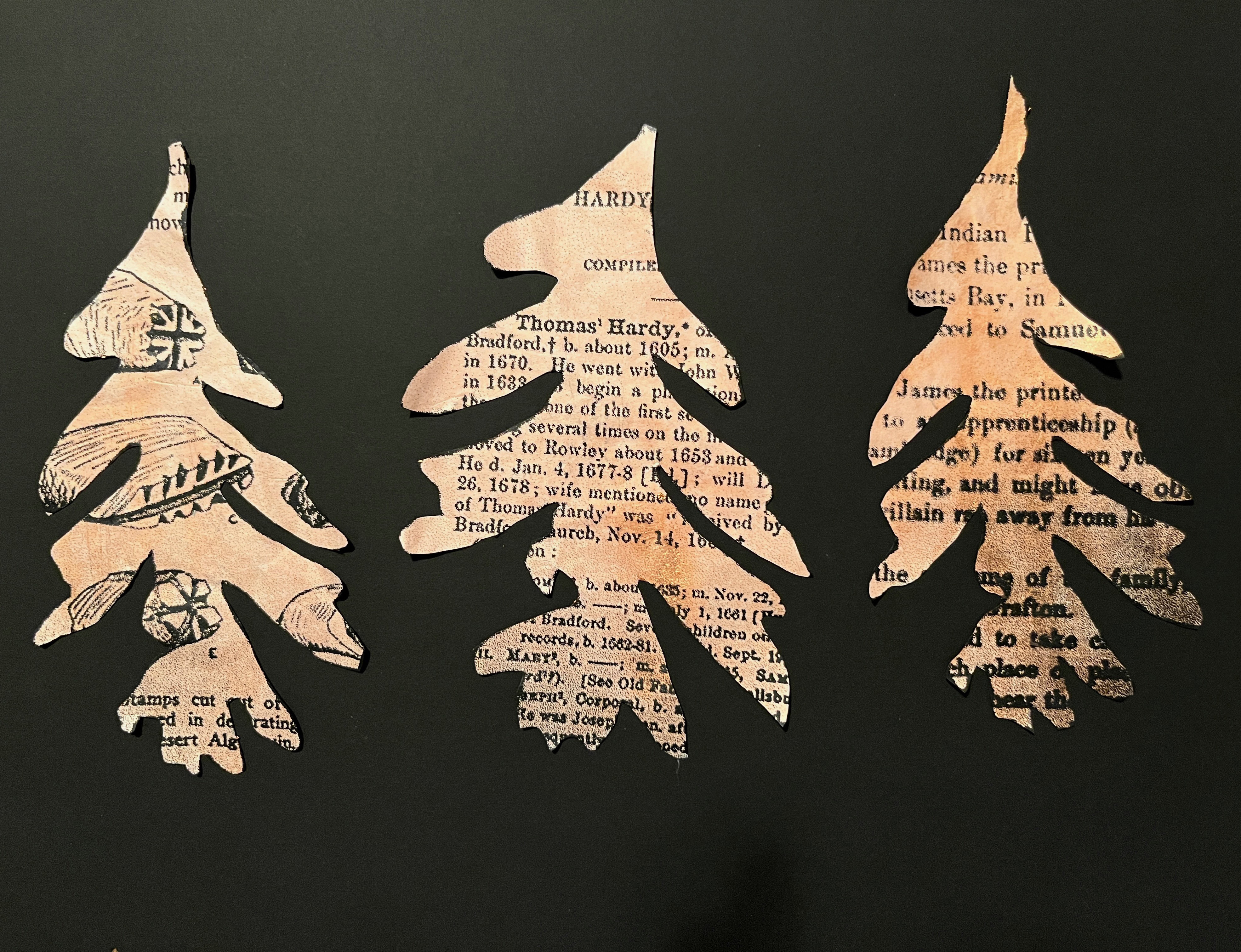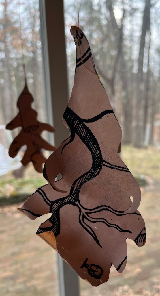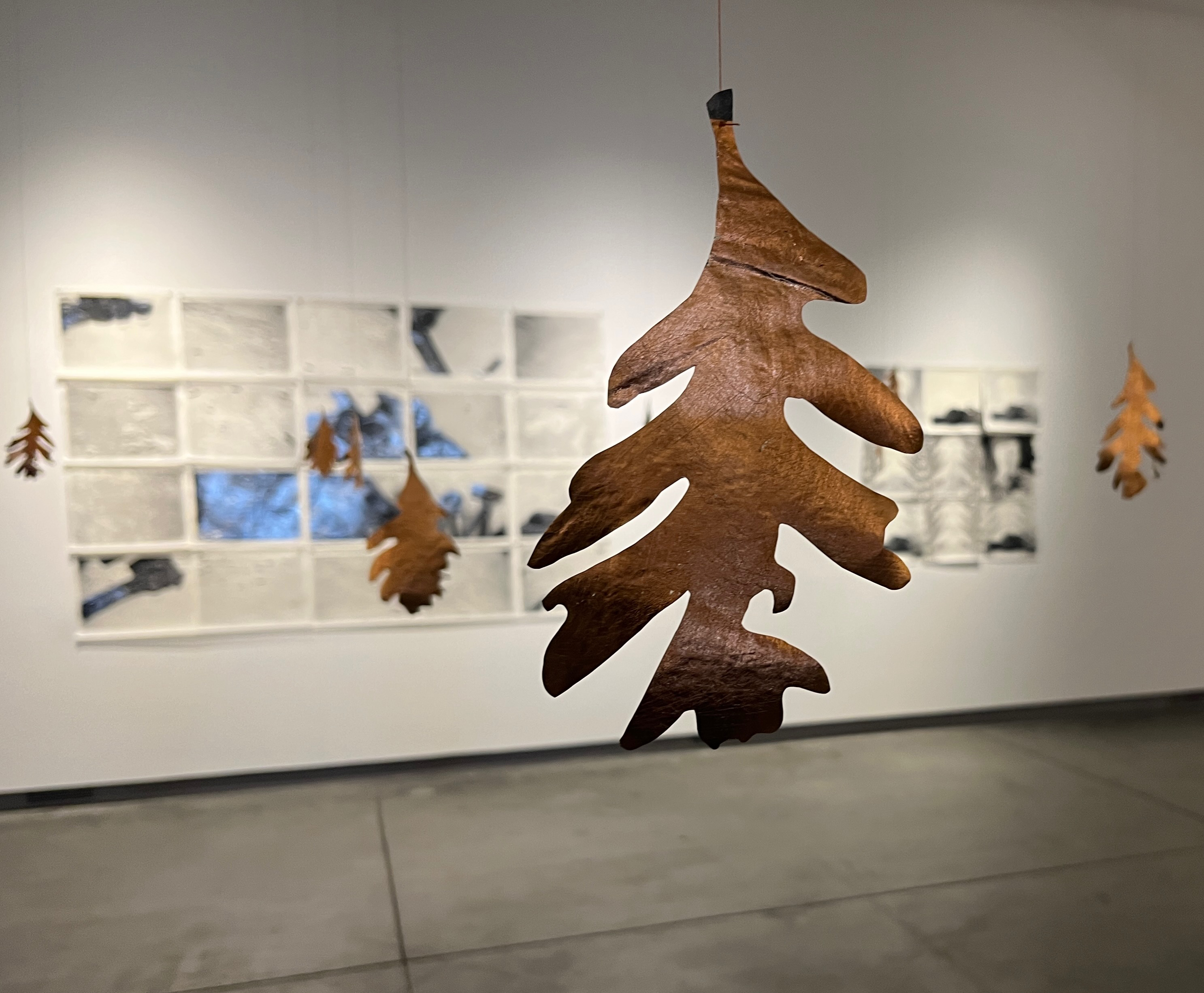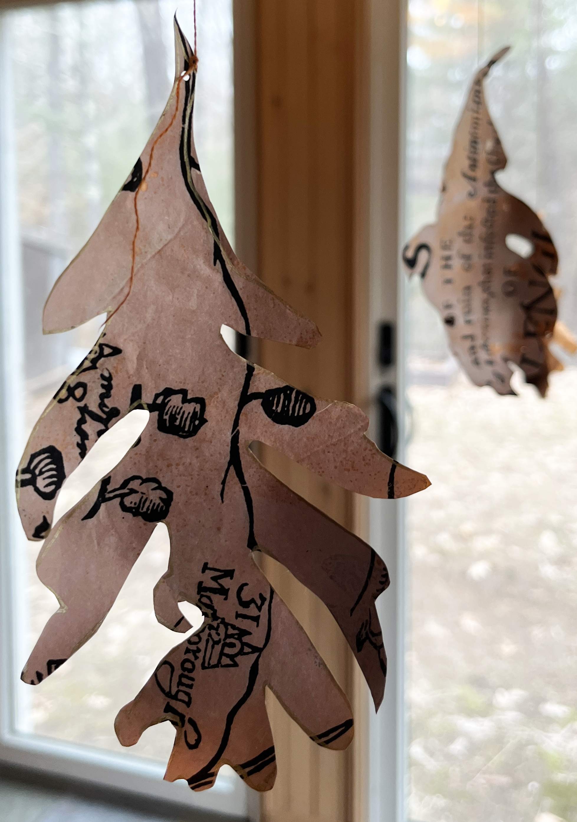 Copper Leaves, silkscreen on gampi with copper leaf backing and cotton thread, 2023. Photo by Jeffu Warmouth.