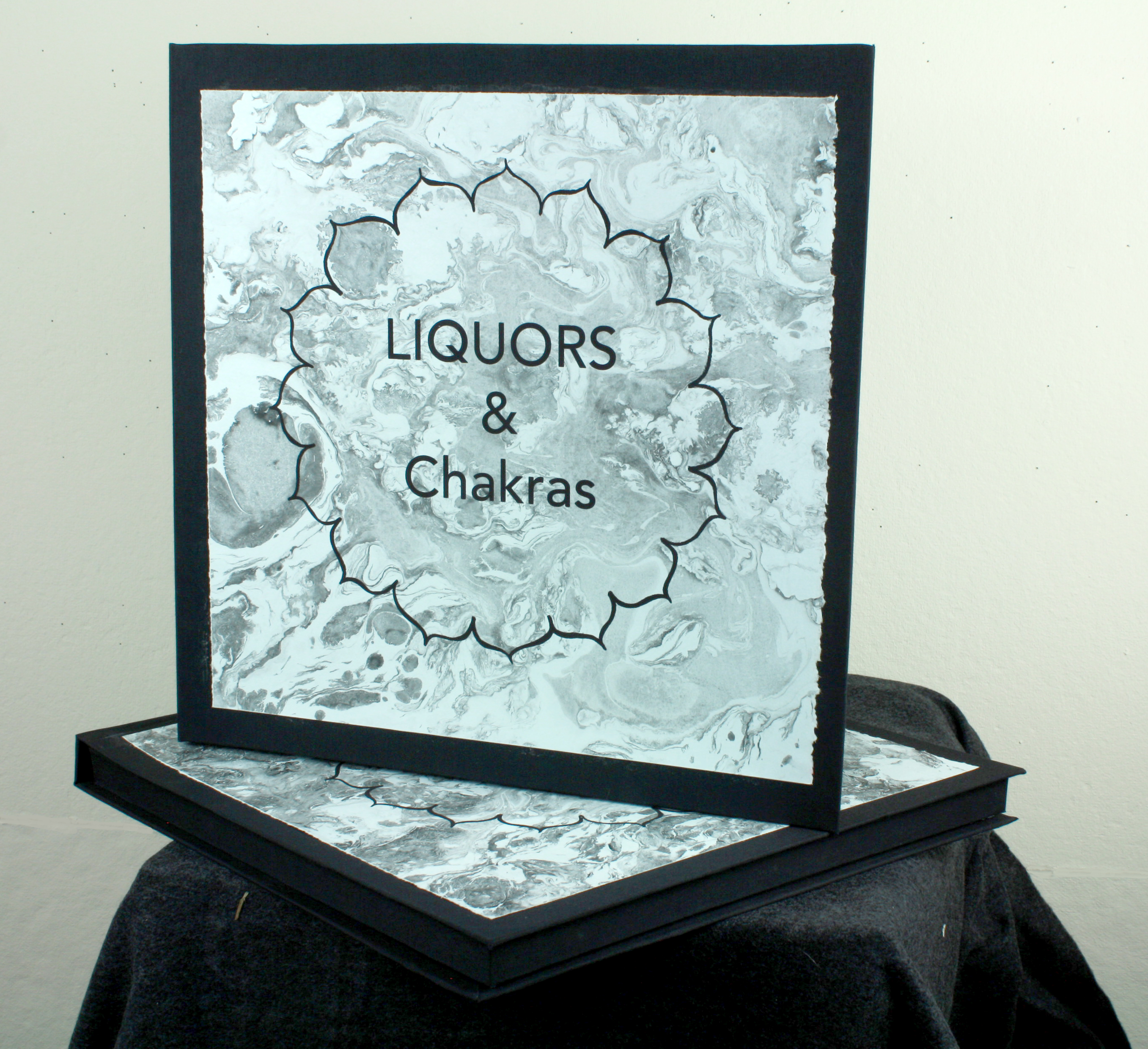 LIQUORS & Chakras A suite of 7 silkscreen prints in a clamshell portfolio with colophon. Title page on hand marbled paper. Sahasrara – L (crown chakra) Share this: Click to share on X (Opens in new window) X Click to share on Facebook (Opens in new window) Facebook Like Loading...