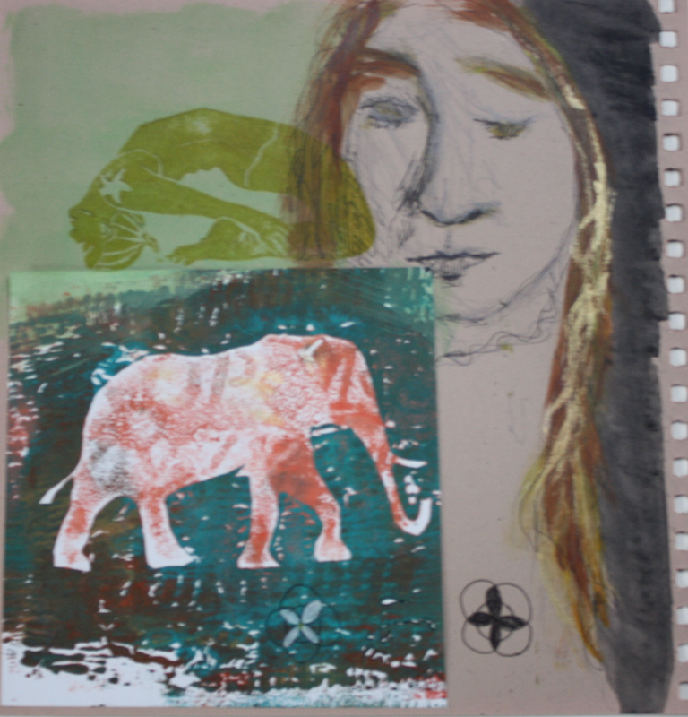 A series of 10 X 10 sketches with printed matter and other ephemera that incorporate my love of Islamic tile patterns with the LIQUORS signage, asana, and other elements.